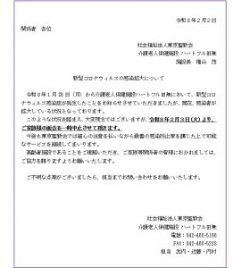 今後も東京聖新会では細心の注意を払いながら最善の感染防止策を講じた上で可能なサービスを継続してまいります。