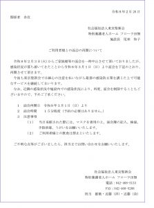 新型コロナウィルスの感染拡大によるご家族様の面会一時中止ついて