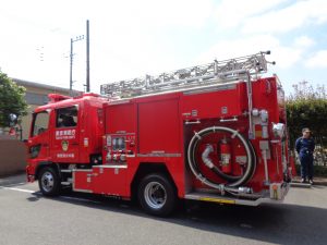 西東京第一団消防隊による消防車の説明や